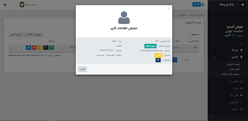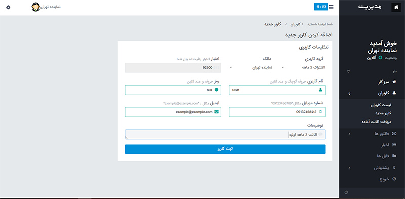 در حالت کلی پنل نمایندگان به این صورت است که نماینده از اعتبار خود اکانت فعال می نماید.