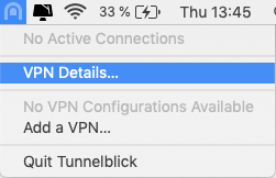 - بعد از اتمام مراحل نصب نرم افزار، بر روی آیکن نرم افزار رو ی استاتوس بار کلیک نمایید و مانند تصویر زیر گزینه VPN details را بزنید: